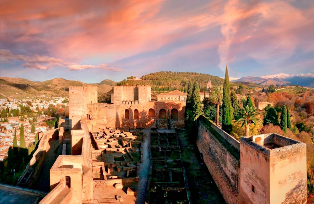 La Alhambra: la ciudad palatina con sus palacios, el Mexuar, el de Comares, el de los Leones. Las ruinas de la Medina y la fortaleza: la Alcazaba. Torres, murallas, jardines, patios y las imponentes puertas de la Alhambra esperan tu visita. No sólo la Edad Media vive en la Alhambra, el renacimiento nos dejó otro sueño, el de Carlos V, el emperador y su impresionante palacio. El palacio de Carlos V ,en el corazón de la Alhambra, es el más importante ejemplo del renacimiento civil en España. Junto a la Alhambra, el Generalife. Huertas medievales, jardines y un palacio, la casa de campo de los sultanes de Granada. Un paraíso aún hoy en pleno siglo XXI.